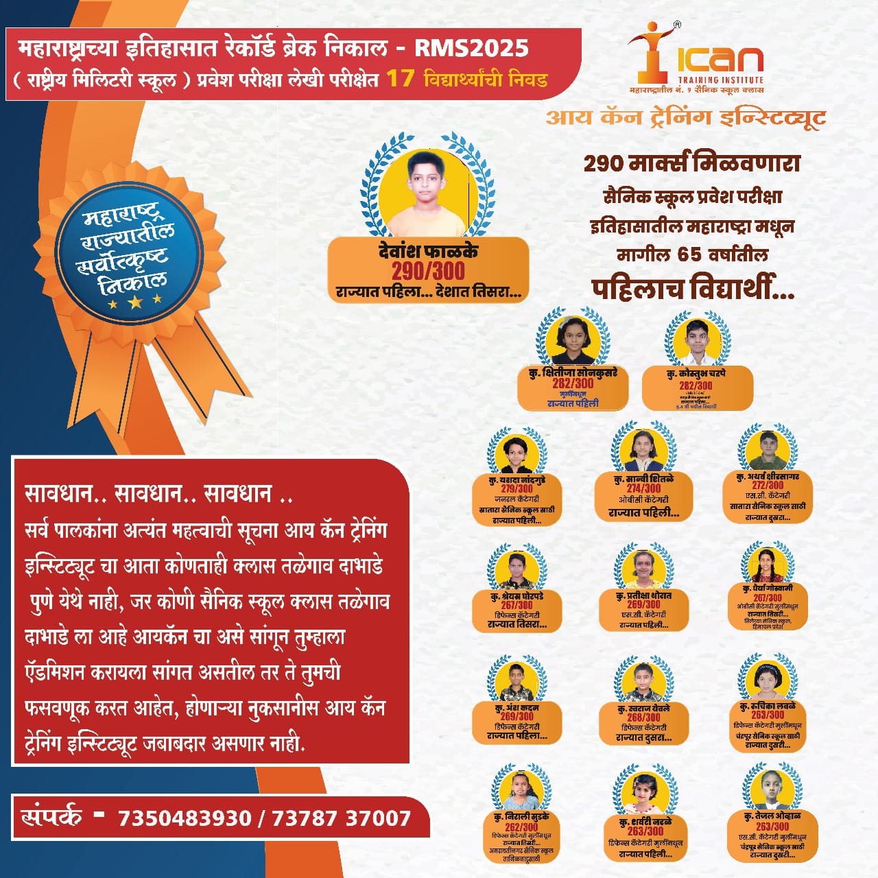 ✴️ 475 + विद्यार्थ्यांची जुने Goverment सैनिक स्कुल साठी निवड