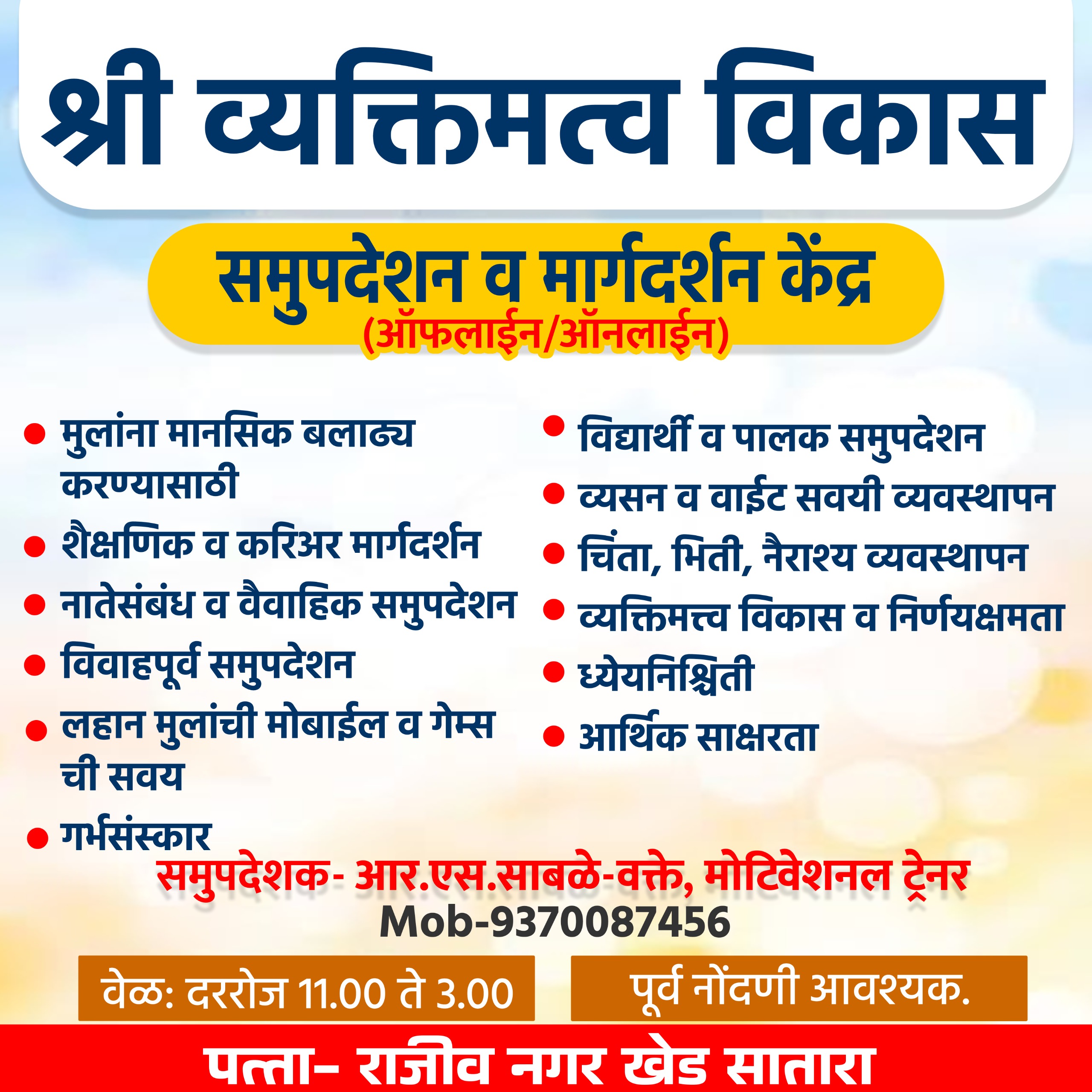 राजेंद्र साबळे हे एक उत्साही प्रेरणादायी वक्ते, कुशल प्रशिक्षक आणि सहानुभूतीपूर्ण समुपदेशक आहेत, जे व्यक्ती आणि संस्थांना सशक्त बनवण्यासाठी समर्पित आहेत. वैयक्तिक विकास आणि परिवर्तनाची आवड असलेल्या राजेंद्र साबळे आपल्या प्रभावी अंतर्दृष्टी, व्यावहारिक रणनीती आणि परिणामकारक दृष्टिकोनातून श्रोत्यांना प्रेरित करतात. व्यक्तींना आव्हानांमधून मार्गदर्शन करणे, संघटनांना यशस्वी होण्यासाठी प्रशिक्षण देणे किंवा प्रभावी व्याख्यान देणे असो, राजेंद्र साबळे लोकांना त्यांची पूर्ण क्षमता साकार करण्यास आणि त्यांच्या उद्दिष्टांची पूर्तता करण्यास मदत करतात.